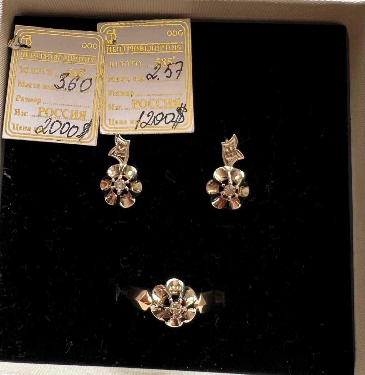 Комплект серьги и кольцо с бриллиантами