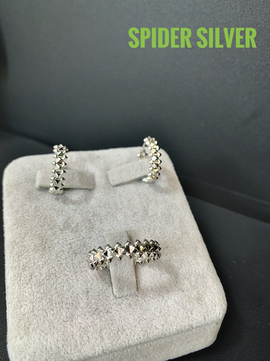 Серебряный комплект Шипы стильный аксессуар для тех, кто любит смелый дизайн. Включает кольцо (размер 17) и серьги-гвоздики.