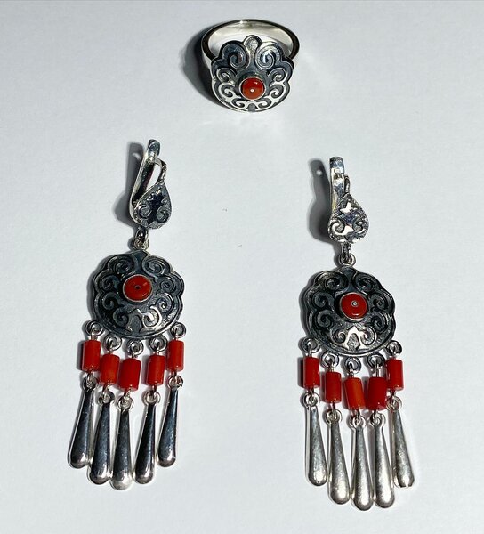 проба:925 качество: 💯 Ручная работа 😉 в комплект входит: кольцо, серьги, кулон.