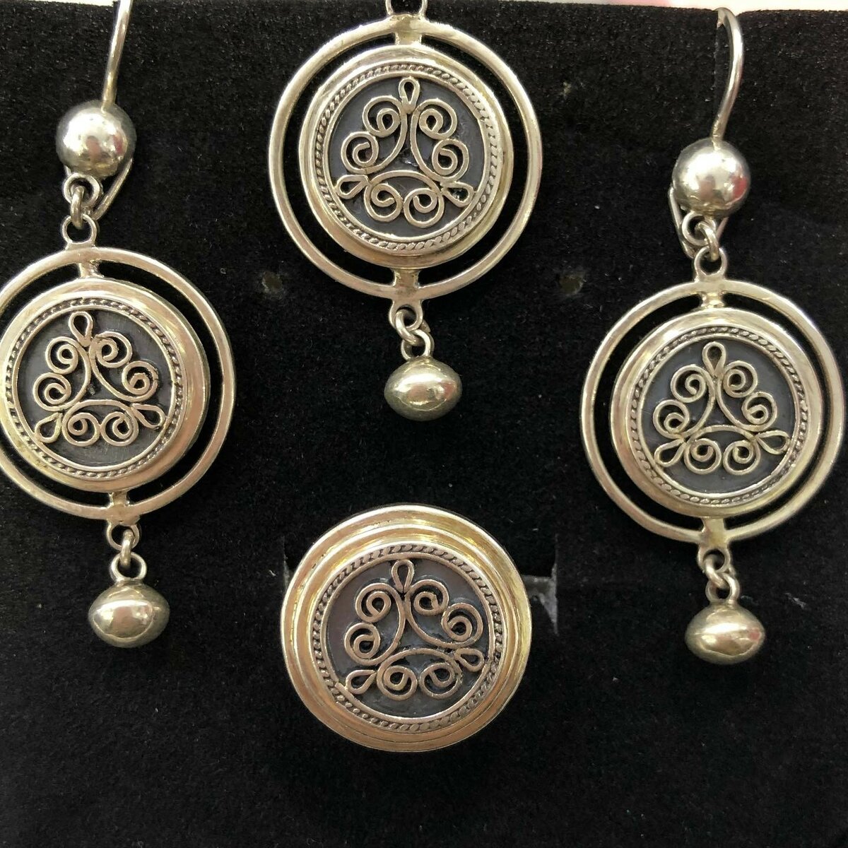 проба:925 качество: 💯 Ручная работа 😉 в комплект входит: кольцо, серьги, кулон.