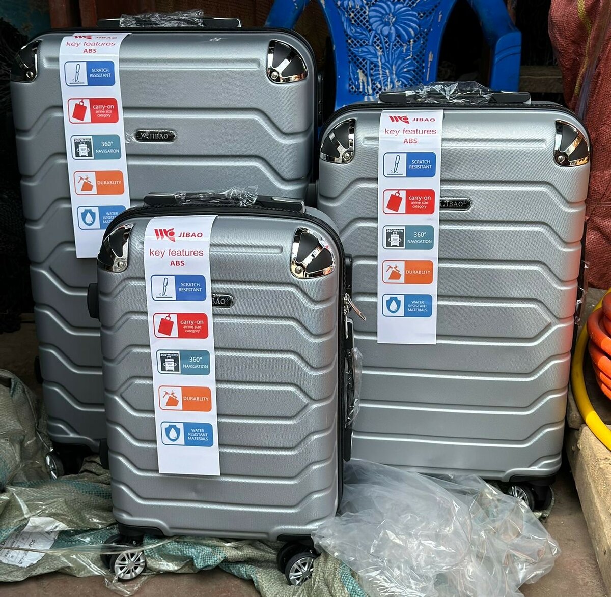 Travel in style with the durable JIBAO 3-piece ABS luggage set. Featuring a modern design, each piece includes 360° spinner wheels for easy maneuverability. Ideal for business trips or vacations, this luggage set offers robustness and ample space while being lightweight. Perfect for all your travel needs.