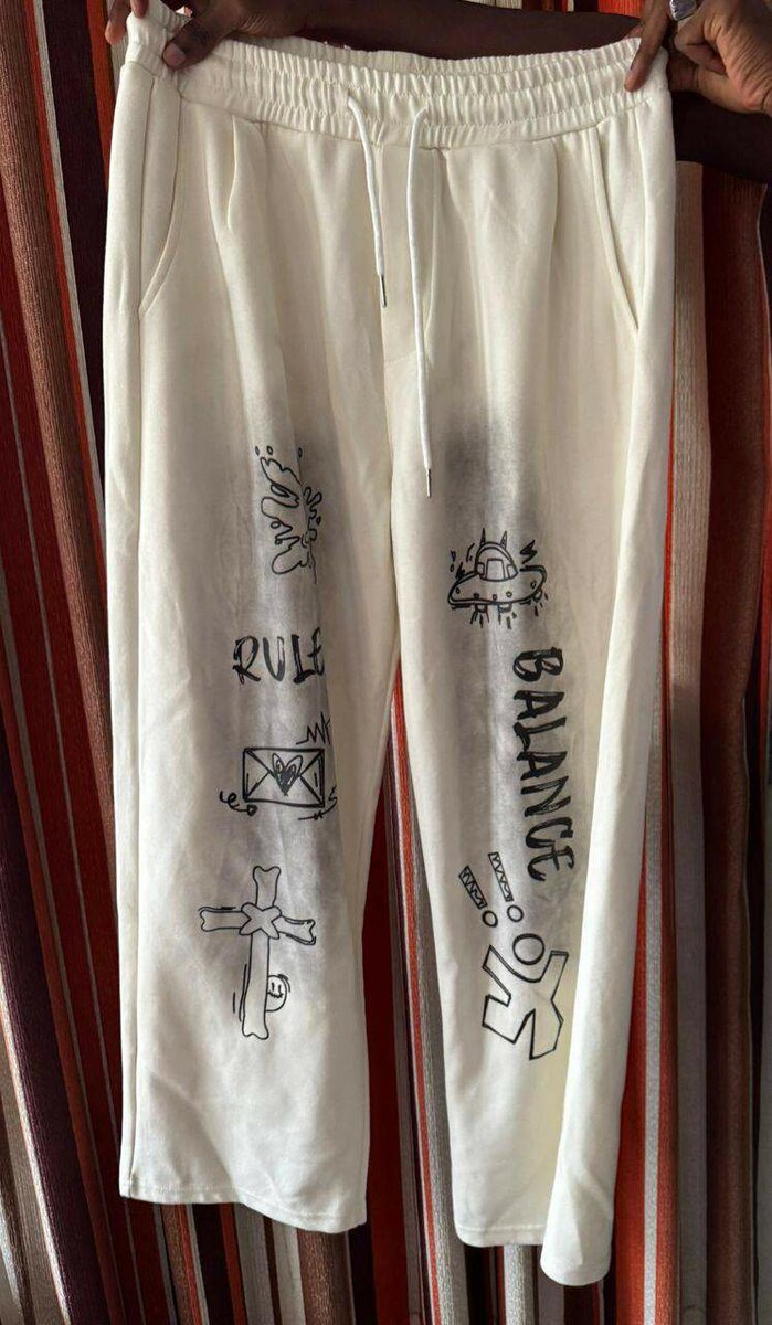 Optez pour le confort et le style avec ce jogging blanc orné de motifs uniques. Parfait pour un look décontracté au quotidien ou pour vos séances de sport. Fabriqué en matériau doux et élastique, il assure une grande liberté de mouvement. Ce pantalon intègre une taille élastique avec cordon de serrage pour un ajustement personnalisé. Idéal pour les passionnés de mode cherchant à ajouter une pièce originale à leur garde-robe. Faites le choix du style et du confort dès aujourd'hui !