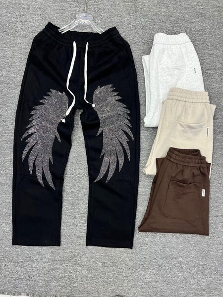 Pantalon de jogging noir avec design ailes argentées, idéal pour un style audacieux et décontracté. Confortable et tendance, parfait pour le sport ou les sorties quotidiennes.