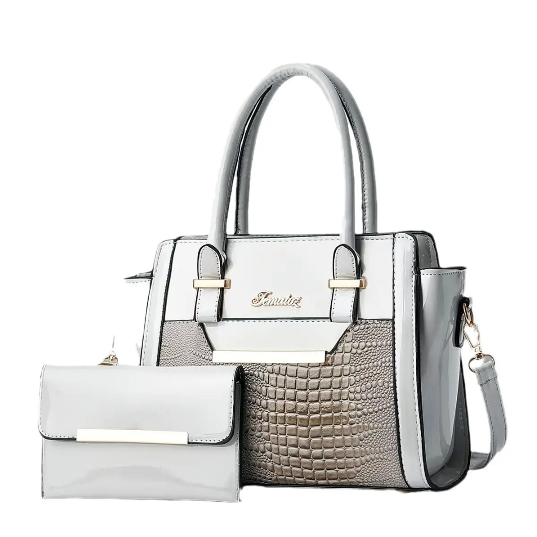 Joli sac à main 2 en 1, très bonne qualité, matière vernis Couleur marron et argent