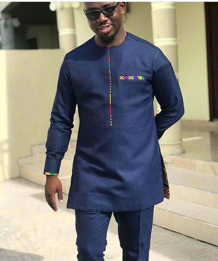 Tunique pour homme manches longue Matière Coton Couleur Bleu