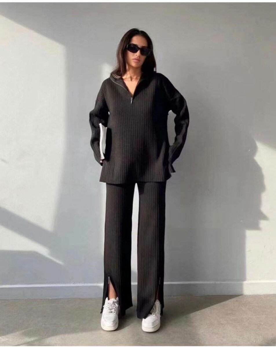 Стильный и комфортный выбор. Мягкий, ребристый трикотаж обеспечивает удобство и эластичность, хорошо держит форму и приятен на ощупь. Брюки и верх с молниями - Размер: стандарт - Производство: Гуанчжоу