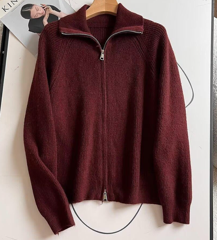 Дизайнерский вязаный кардиган с двойной молнией и лацканами для женщин осенью и зимой, свободный, облегающий повседневный короткий верх