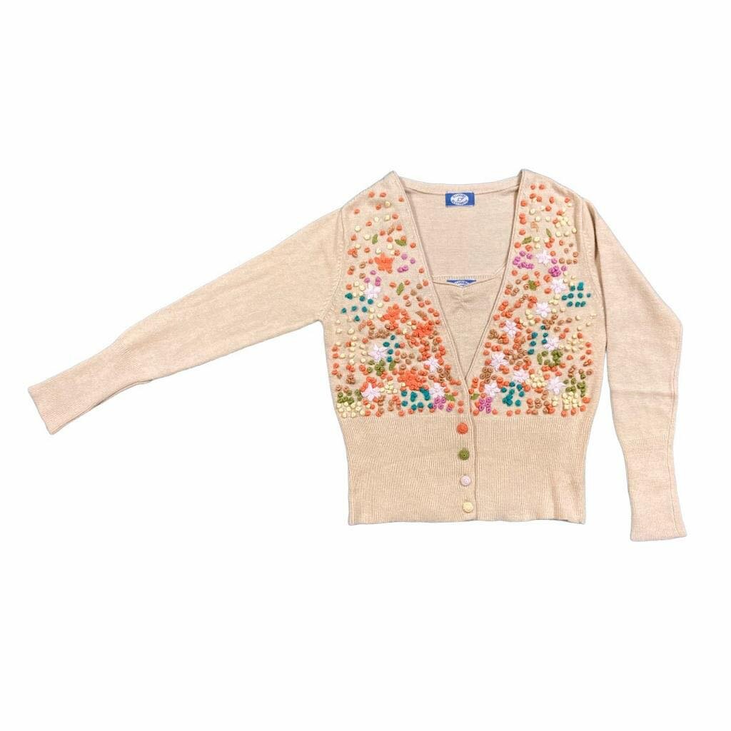Красивая двойка (джемпер и топ) из ангоры нежного бежевого цвета с цветной вышивкой ручной работы - "Blumarine" Италия - 38 разм.