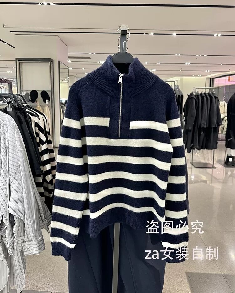 Женская кофта в полоску на полузамке