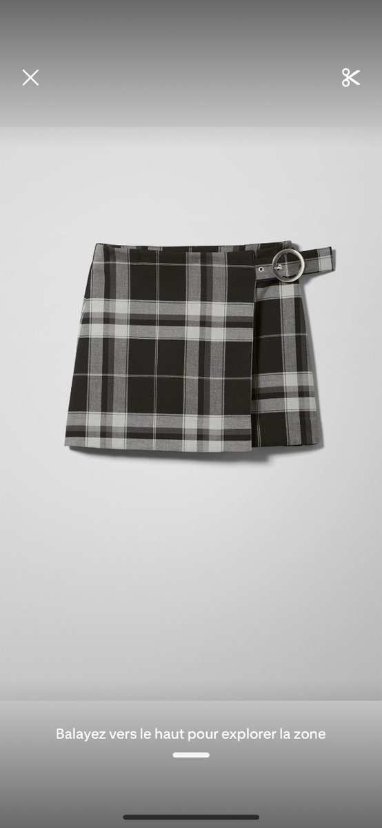 Jupe courte, enveloppe, à carreaux noir et gris .