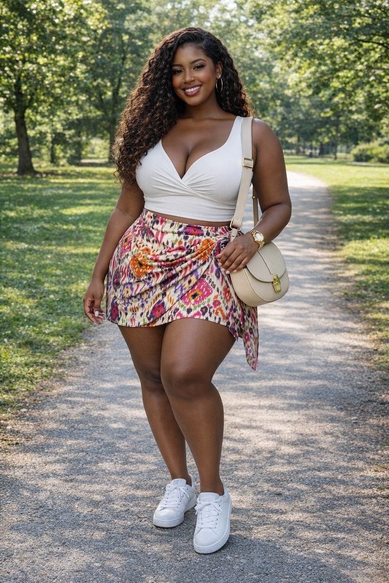 Adoptez un look vibrant et stylé avec cette jupe à imprimé ethnique. Parfaite pour les sorties décontractées ou les occasions estivales, sa ceinture haute flatte la silhouette tandis que ses couleurs vives captivent le regard. Fabriquée dans un tissu léger et confortable, elle est idéale pour l'été. Associez-la avec un débardeur uni et des baskets pour un style décontracté-chic.