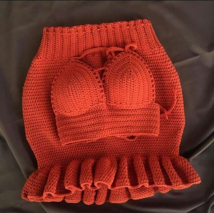 Ensemblecrochet orange élégant