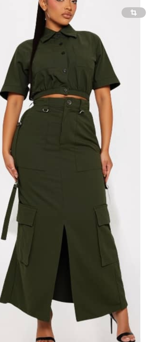 Optez pour un look tendance avec cette jupe cargo longue en vert kaki. Dotée de poches pratiques et d'une coupe flatteuse, elle est idéale pour un style casual chic. Parfaite pour les sorties urbaines ou un look de jour décontracté.