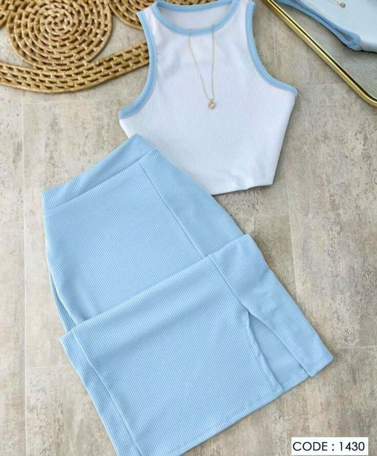 Ensemble chic avec jupe crayon et haut à bretelles. Parfait pour un look casual élégant. Disponible en plusieurs couleurs. Idéal pour les sorties ou le bureau.