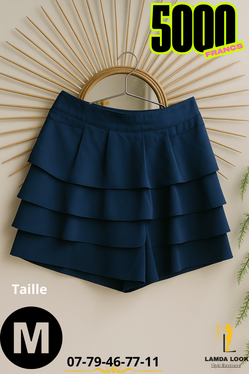 Adoptez avec LAMDA LOOK un look tendance avec cette jupe culotte à volants bleus. Parfaits pour l'été, ils offrent style et confort en toute occasion. Idéal pour un look décontracté ou habillé. Taille S M disponible!