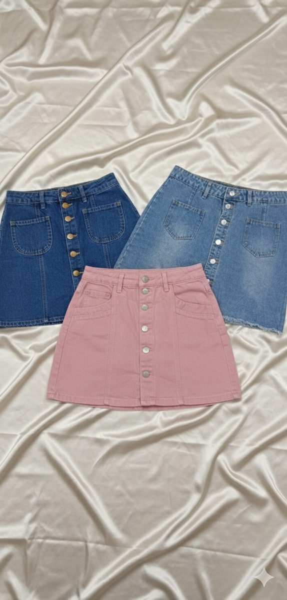 Découvrez notre jupe en denim boutonnée, un ajout parfait à votre garde-robe. Disponible en trois couleurs tendance : bleu foncé, bleu clair et rose. Fabriquée en coton de haute qualité, cette jupe offre confort et style. Idéale pour un look décontracté ou pour sortir avec des amis.