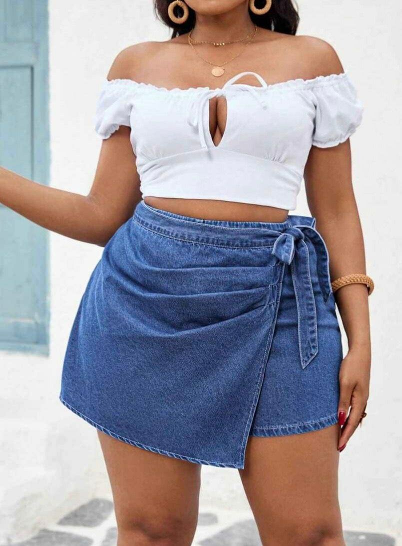 Optez pour cette jupe en jean tendance pour un look moderne et décontracté. Sa coupe flatteuse et sa ceinture nouée ajoutent une touche féminine et stylée à votre tenue. Idéale pour les sorties en ville ou les soirées entre amis, cette jupe polyvalente se mariera parfaitement avec votre garde-robe estivale. Fabriquée en denim de haute qualité pour un confort optimal.