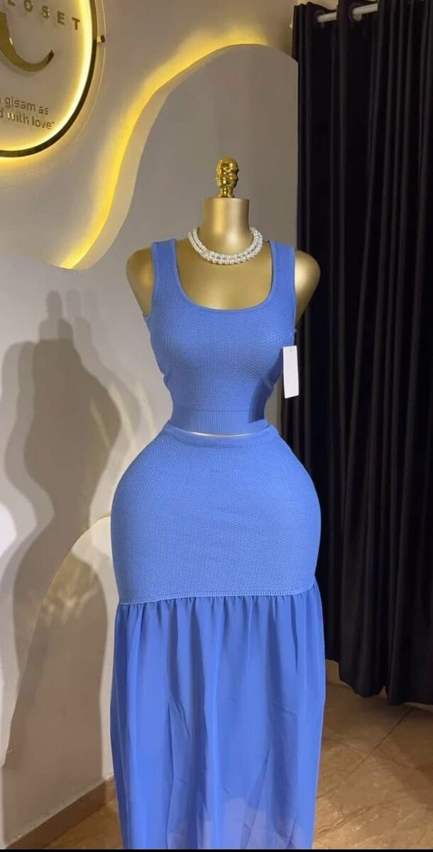 Cet ensemble moulante bleue est un choix élégant pour toute occasion. Avec sa coupe ajustée et son tissu fluide, elle accentue parfaitement vos courbes tout en offrant un confort exceptionnel. Parfaite pour une soirée ou un événement formel, cette robe est incontournable dans votre garde-robe.