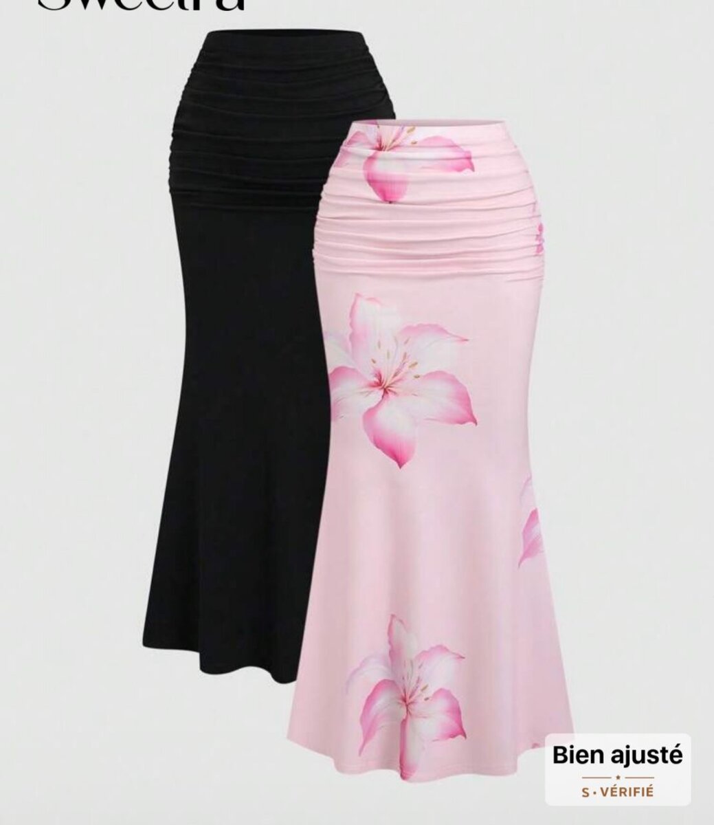 Élégante jupe évasée pour femme avec motif floral, idéale pour les occasions spéciales et les looks décontractés. Disponible en noir classique et rose romantique. Confortable et bien ajustée grâce à sa taille haute plissée. Parfaite pour un style sophistiqué et féminin.