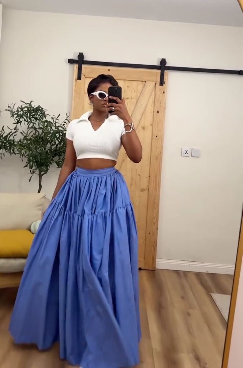 Découvrez cette jupe longue fluide, parfaite pour un look sophistiqué et confortable. Idéale pour des événements spéciaux ou des sorties décontractées, cette jupe est un incontournable de votre garde-robe. Son tissu doux et sa coupe élégante vous garantiront un style unique et seyant.