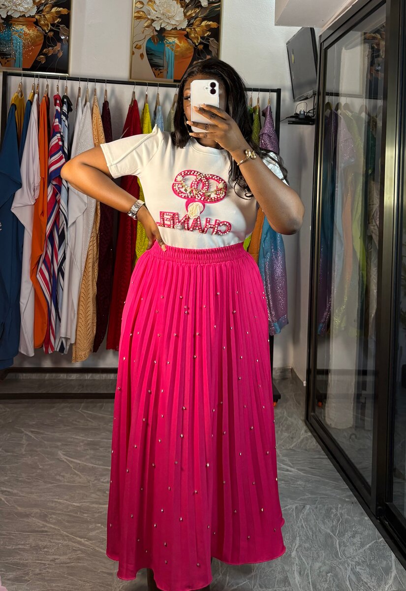 Découvrez cette élégante jupe longue plissée en rose vif, idéale pour un look chic et tendance. Accentuée de perles délicates, elle apporte une touche de glamour à votre tenue. Parfaitement assortie avec des tops basiques ou habillés, elle est un choix polyvalent pour vos sorties ou événements spéciaux. Taille confortable et tissu fluide pour un port agréable tout au long de la journée. Soyez prête à impressionner !