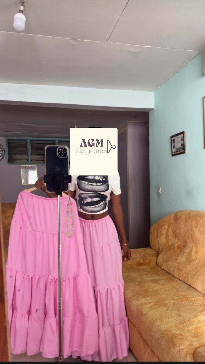 Optez pour cette jupe longue rose à volants pour un look bohème élégant. Parfaite pour les occasions décontractées comme pour les sorties, elle allie confort et style. Idéale pour les journées ensoleillées ou les soirées estivales.