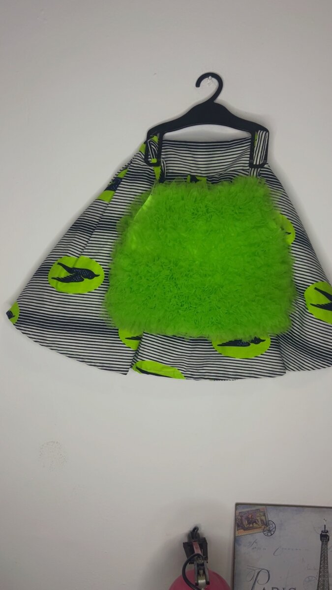 Adoptez un style audacieux avec cette jupe en pagne évasée à imprimé graphique et couleur fluo. Idéale pour une tenue décontractée, elle apporte une touche vive et unique à votre garde-robe. Associez-la avec une Ballerines pour un contraste parfait. Un choix incontournable pour se démarquer!