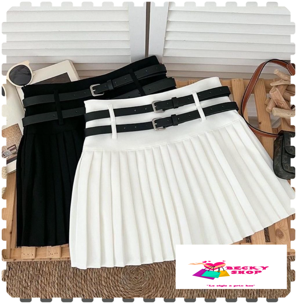 Élégante jupe plissée avec double ceinture ajustable. Idéale pour un look chic et moderne, parfaite pour le bureau ou une sortie décontractée. Disponible en blanc et noir pour s'adapter à toutes les occasions. Confort et style garantis!