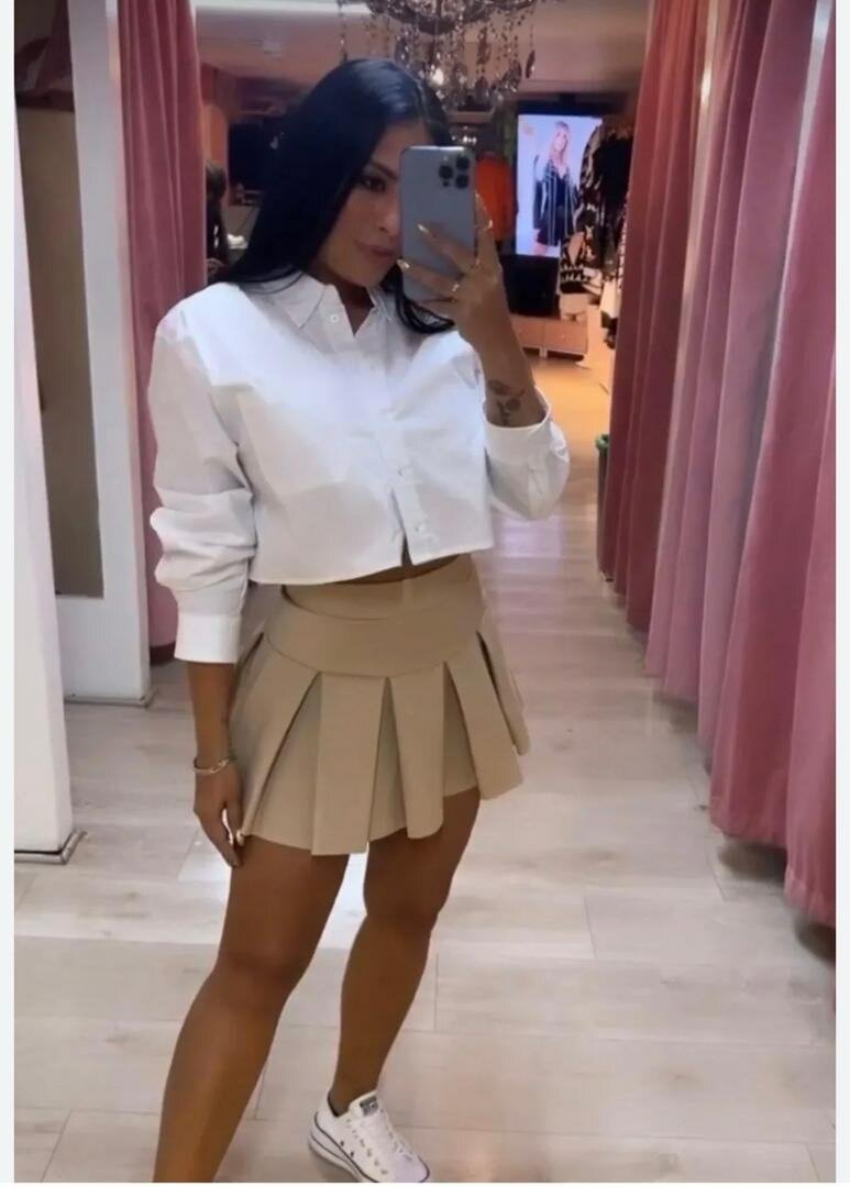 Découvrez cette élégante jupe plissée beige, idéale pour un look décontracté et stylé. Parfaite pour les sorties en ville ou les occasions spéciales, elle se marie facilement avec divers hauts et accessoires. Un indispensable pour votre garde-robe!