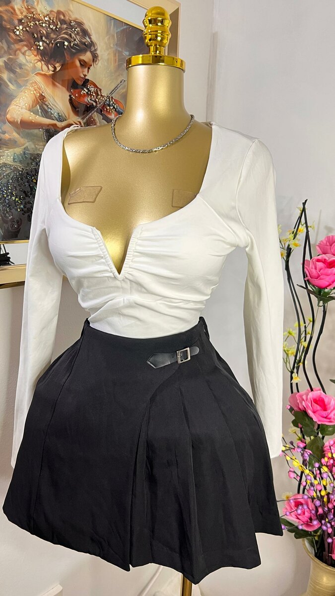 Découvrez cette jupe plissée noire élégante, parfaite pour un look trendy et sophistiqué. Fabriquée avec des matériaux de qualité, elle assure confort et style. Idéale pour les sorties, le bureau ou les rendez-vous. Associez-la à des tops variés pour une tenue chic et personnalisée.