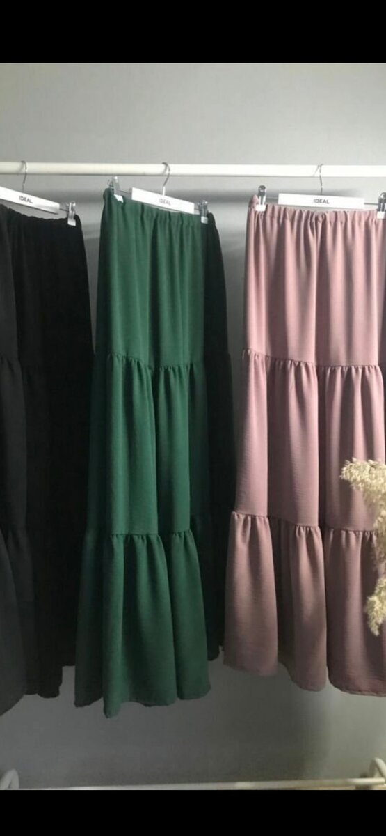 Découvrez nos élégantes jupes longues évasées, disponibles en noir, vert et rose. Parfaites pour un look chic et décontracté, ces jupes ajoutent une touche de style à toute tenue. Faciles à porter en toute occasion, elles sont idéales pour les sorties en ville ou les soirées entre amis.