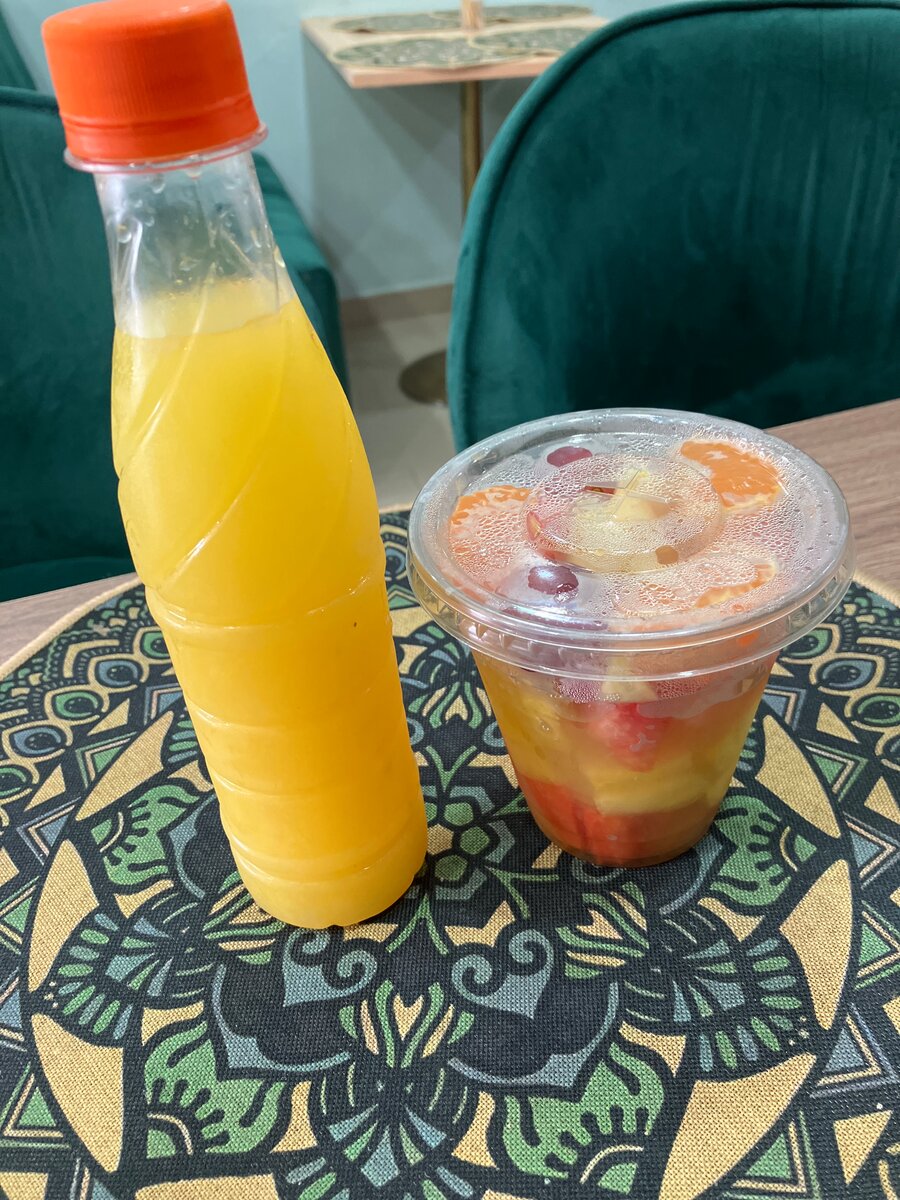 Découvrez notre jus d'orange fraîchement pressé, idéal pour un petit-déjeuner vitaminé ou une pause rafraîchissante. Accompagné d'une salade de fruits variée pour une expérience fruitée complète. Parfait pour tous les amateurs de saveurs naturelles et saines.