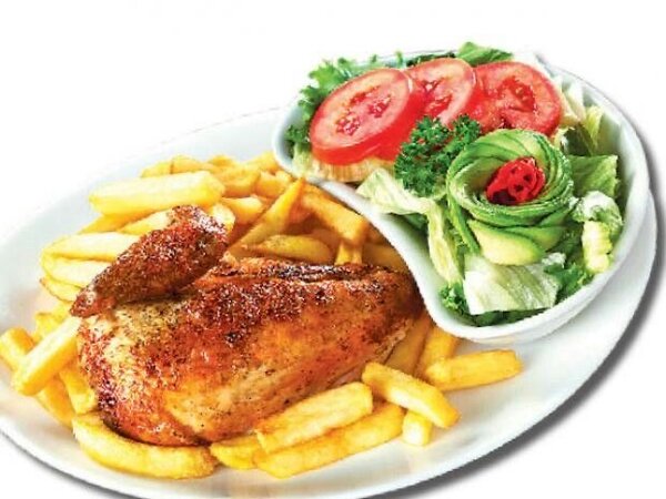 Poulet rôti frites salade