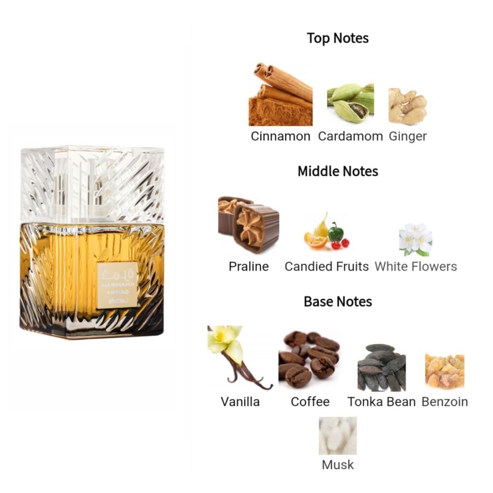 Découvrez la fusion parfaite d'épices exotiques et de notes gourmandes qui éveillent les sens. Ce parfum unique combine la chaleur de la cannelle et du cardamome avec la douceur de la praline et des fruits confits. Un fond de vanille, café et musc apporte une touche apaisante et envoûtante. Idéal pour une soirée spéciale ou une occasion mémorable.