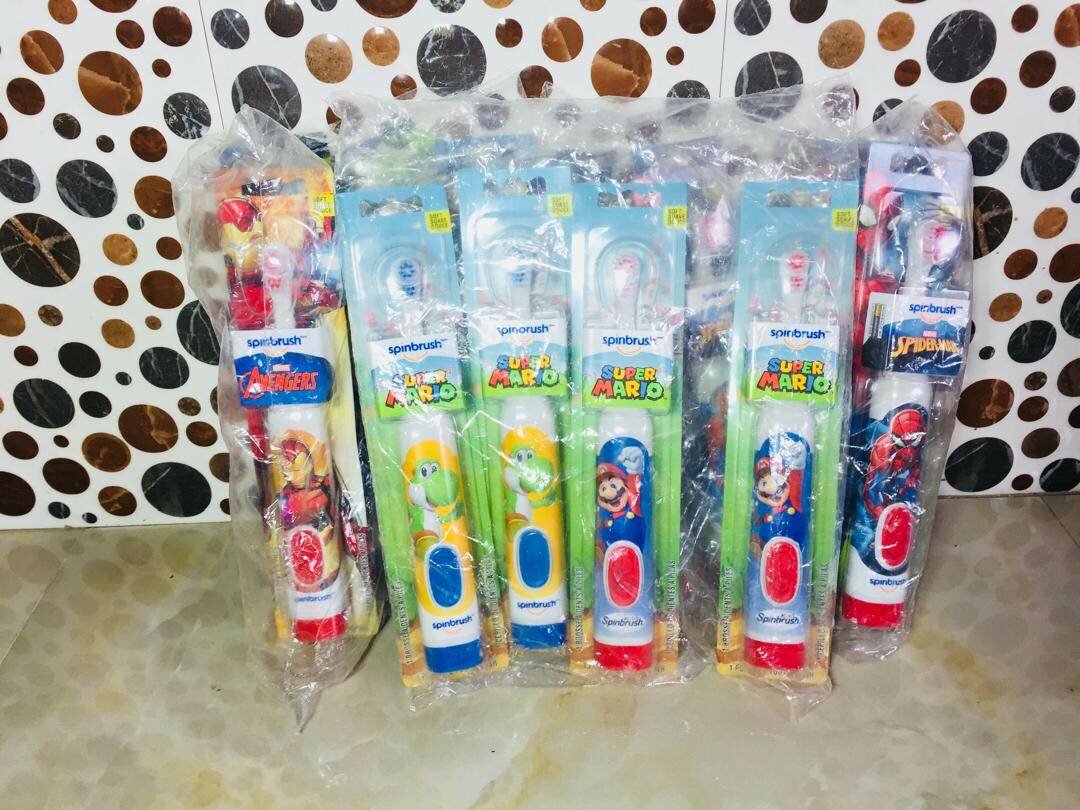 Kids spin toothbrush which uses batteries for easy brushing. Make your kids love brushing. Different cartoon and toy characters to choose from