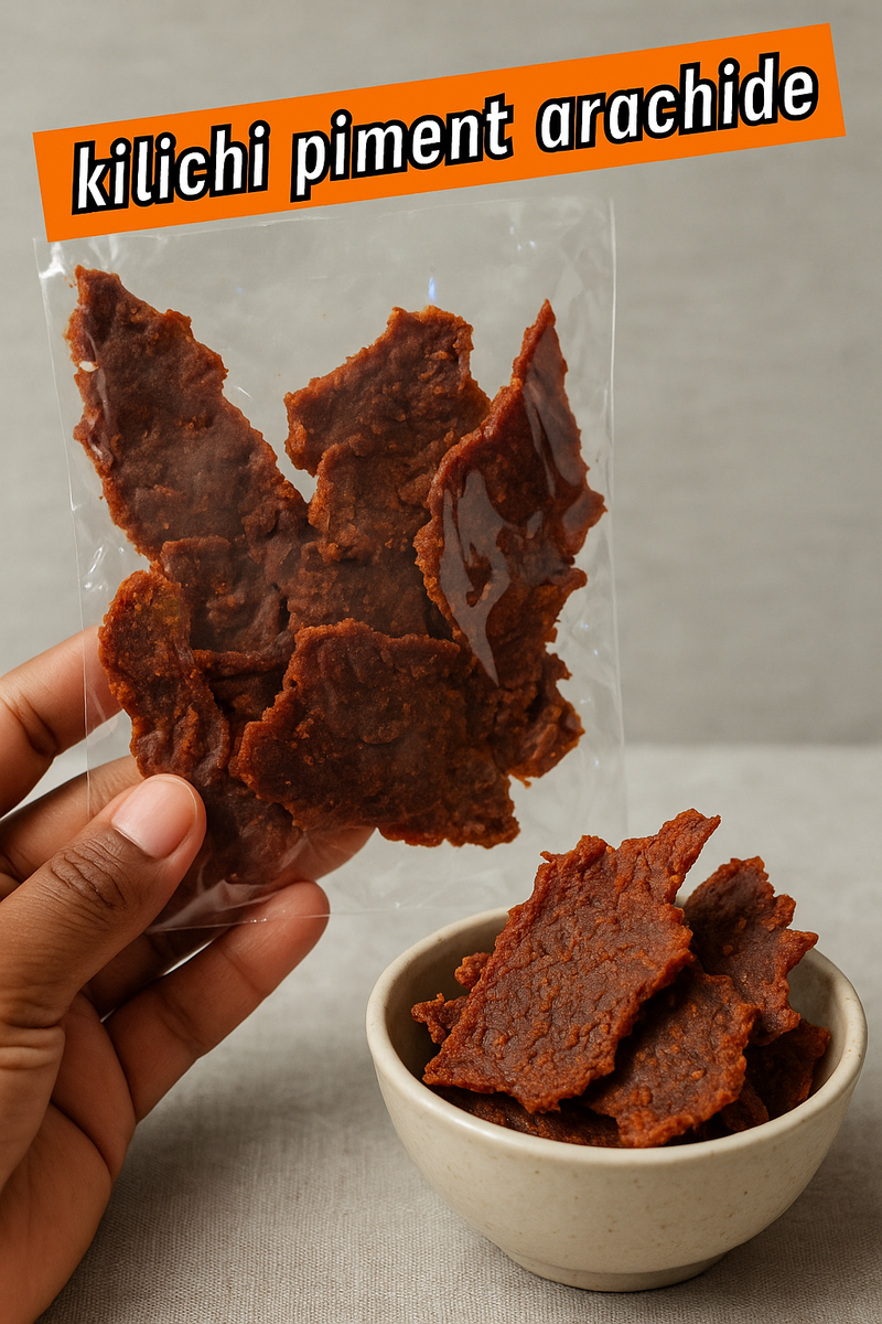 Découvrez notre délicieuse viande séchée Kilichi, disponible en quatre saveurs : Nature, Piment, Piment Arachide, et Piment Léger. Parfait pour vos encas épicés ou vos apéritifs. Livraison rapide en Côte d'Ivoire.