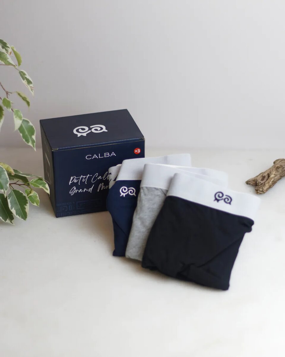 Découvrez lélégance et le confort incarnés par Calba, une marque sénégalaise qui allie tradition et modernité. Ce kit de 3 caleçons de couleur mix (noir, gris et bleu marine) et en coton de qualité supérieure est conçu pour offrir un bien-être optimal tout au long de la journée.