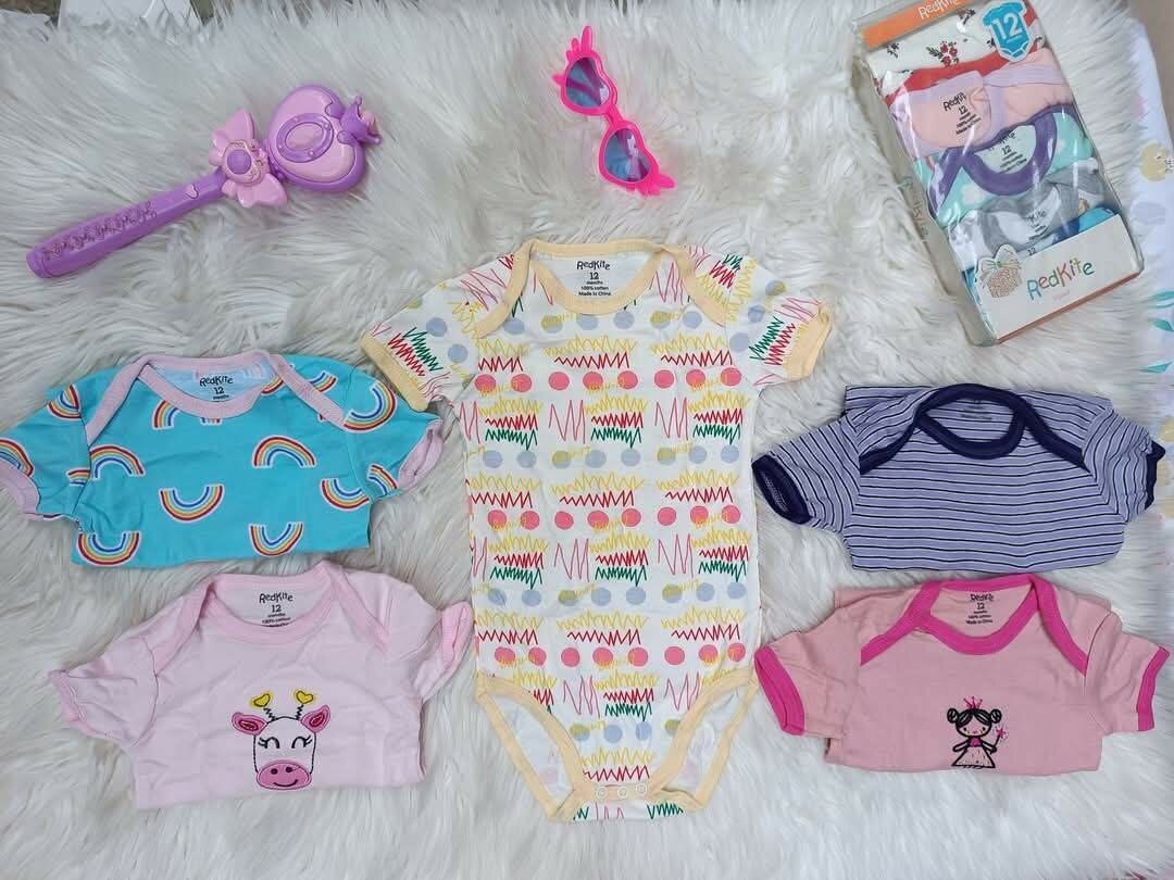 Lot de 5 barboteuses en coton 100% 9-12 mois