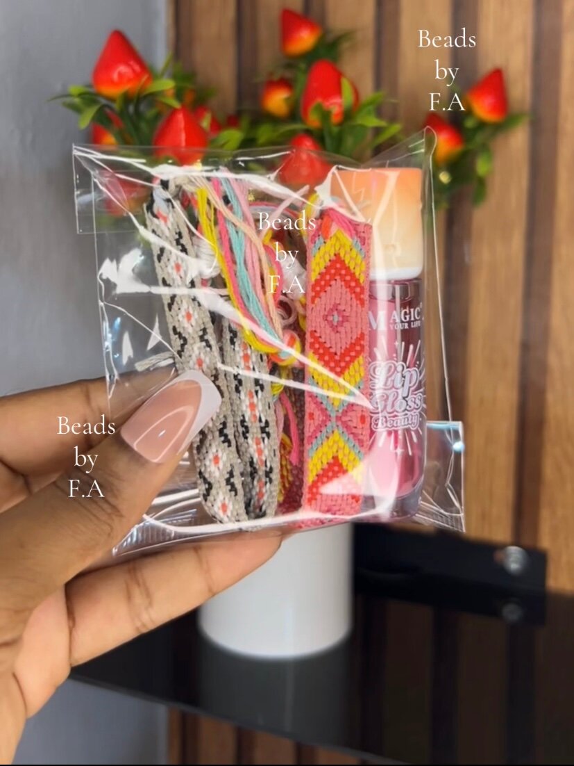 Ajoutez une touche de couleur et de style avec cet ensemble de bracelets tissés à la main, accompagné d'un magnifique gloss.