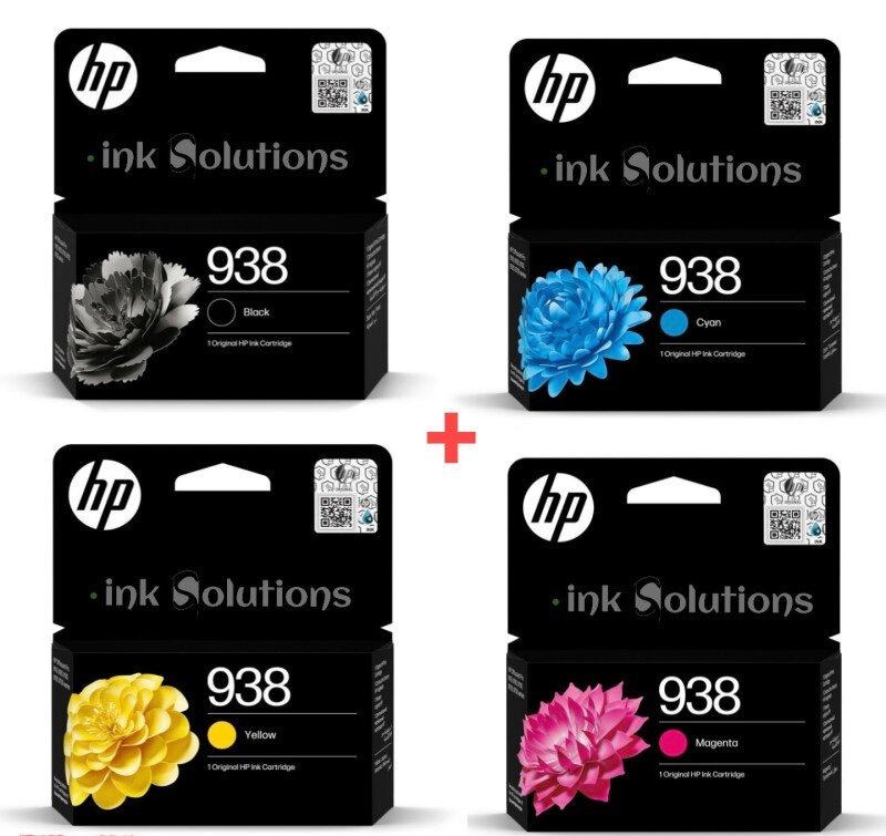 Optimisez vos impressions avec le kit HP 938 comprenant les couleurs noir, cyan, magenta et jaune. Idéal pour des documents vibrants et de qualité professionnelle à la maison ou au bureau.
