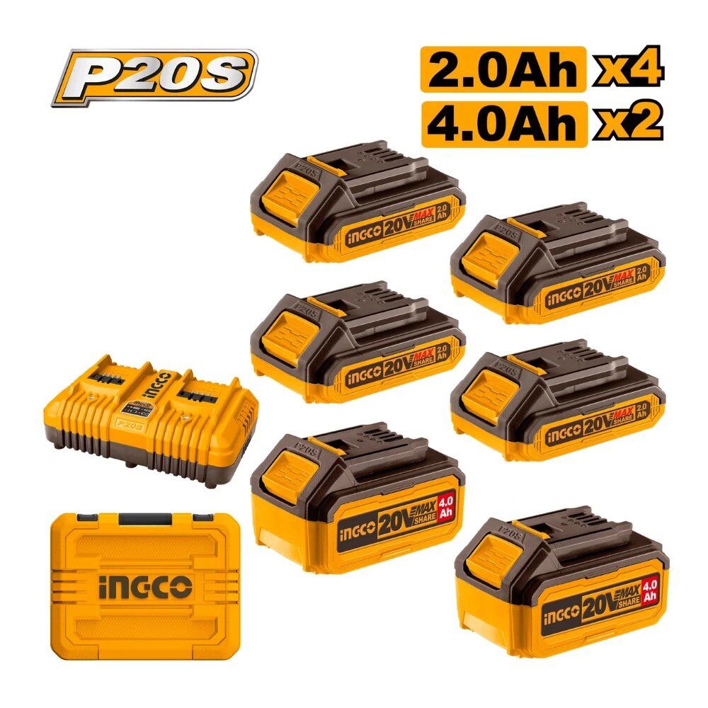 Optez pour ce kit de batteries INGCO 20V, idéal pour vos outils sans fil. Comprenant 4 batteries 2.0Ah et 2 batteries 4.0Ah, ce set vous offre une puissance prolongée. Parfait pour les travaux professionnels et domestiques, il assure une compatibilité étendue avec les outils INGCO. Une solution fiable et durable pour un maximum de performance!
