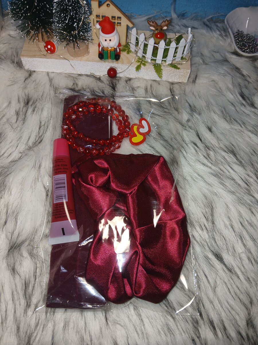 Découvrez notre kit glamour composé d'un rouge à lèvres vibrant, d'un bandeau satiné et d'un élégant bracelet en perles. Parfait pour des occasions spéciales ou un cadeau, il ajoute une touche d'élégance à votre style.