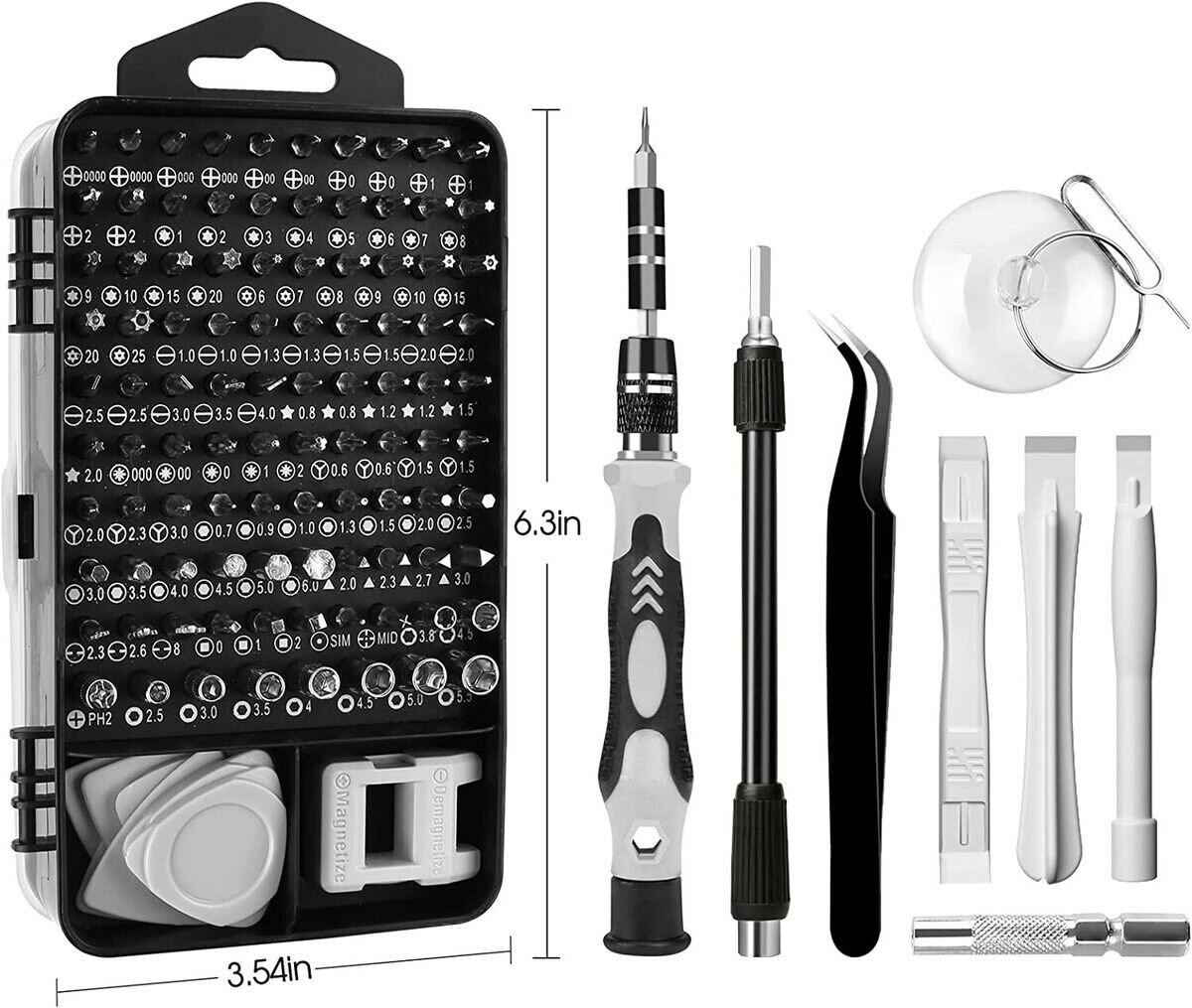 Kit complet avec 101 embouts pour réparation de téléphones et appareils électroniques. Comprend des pinces antistatiques et des outils d'ouverture. Idéal pour techniciens et bricoleurs.