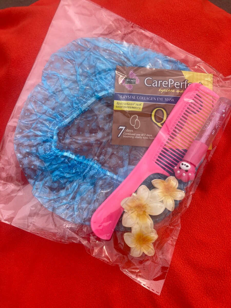 Transformez votre routine beauté avec notre kit de soin capillaire complet. Comprenant un peigne, une pince à cheveux fleurie, un masque pour les yeux, un gloss et un bonnet de douche, il est idéal pour prendre soin de vous à la maison comme en déplacement. Parfait pour offrir ou se faire plaisir, c'est l'essentiel des jours de cocooning !