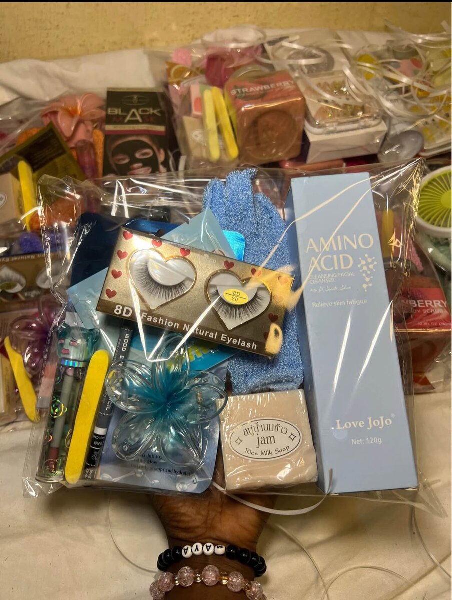 Un coffret cadeau idéal pour elle, rempli de produits de soin essentiels : cils naturels, savon parfumé, et accessoires de beauté. Parfait pour se chouchouter !