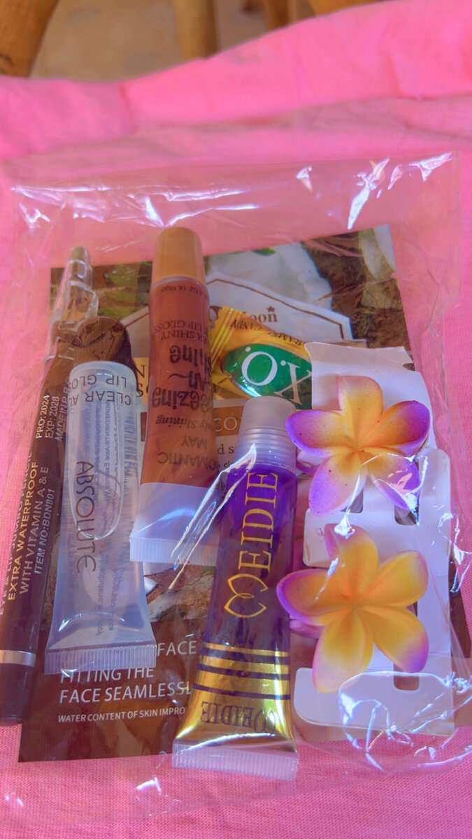 Profitez d'une expérience exotique avec ce kit de soins de la peau. Comprend des lotions et huiles hydratantes, des brillants à lèvres et de jolis accessoires floraux. Idéal pour chouchouter votre peau et vous relaxer.