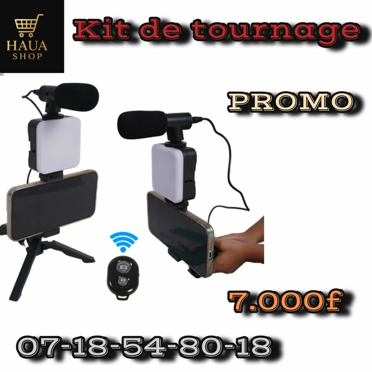 Améliorez vos vidéos avec ce kit de tournage pour smartphone. Inclut un microphone, une lumière et un trépied pour des enregistrements stables et professionnels. Idéal pour vlogs, tutoriels et créations de contenu.