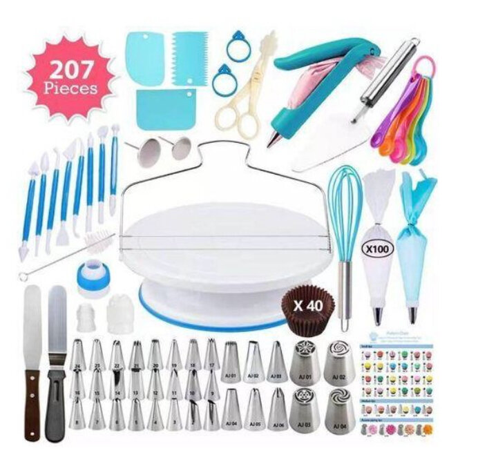 Transformez vos créations pâtissières avec ce kit de décoration de gâteau de 207 pièces. Comprend un support tournant, des douilles en acier inoxydable, des poches à douilles, et plus encore pour des designs créatifs. Idéal pour les amateurs et les professionnels de la pâtisserie. Faites de chaque gâteau une œuvre d'art!