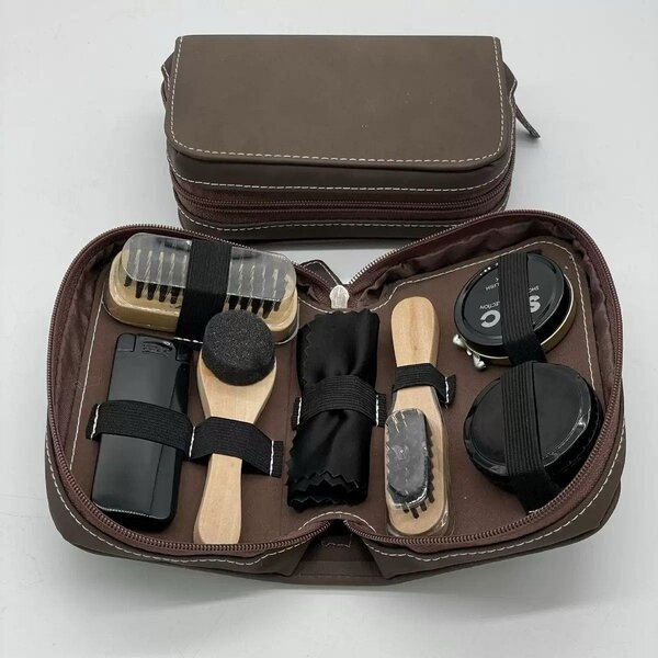 Ce kit d'entretien de chaussures tout-en-un est parfait pour garder vos chaussures en cuir impeccables. Compact et facile à transporter, il contient tous les accessoires nécessaires : brosse, cirage, chiffon, et plus encore. Idéal pour les voyageurs ou pour un entretien quotidien à domicile. Ce kit assure une brillance et une longévité optimales à vos chaussures préférées.