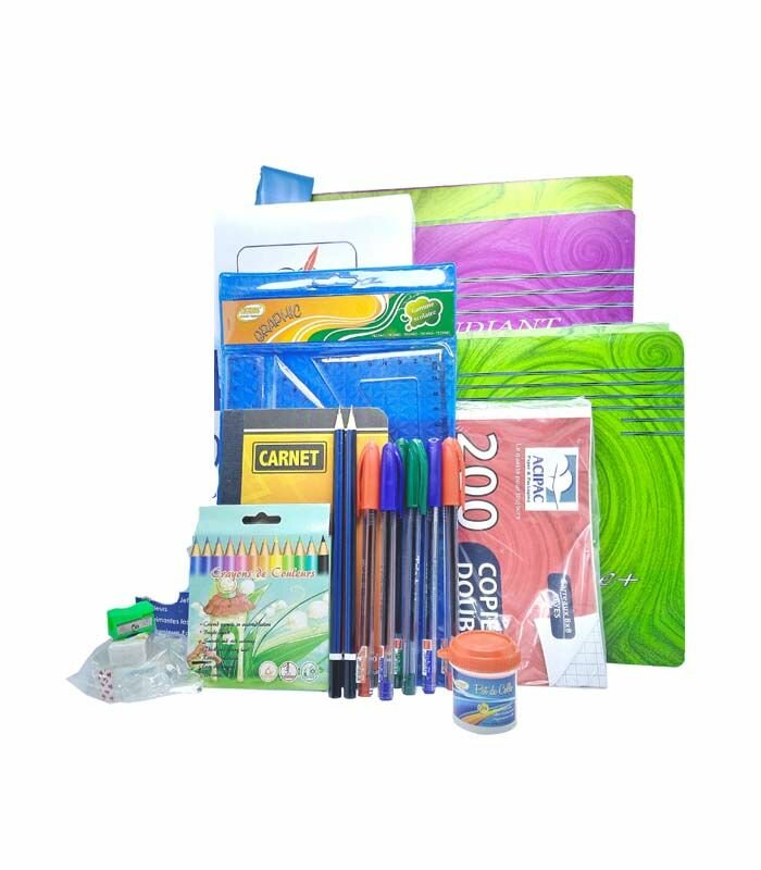 Idéal pour la rentrée scolaire, ce kit complet offre tout le nécessaire : cahiers, stylos, crayons de couleur, taille-crayon, et plus encore ! Parfait pour les élèves soucieux de commencer l'année bien préparés.